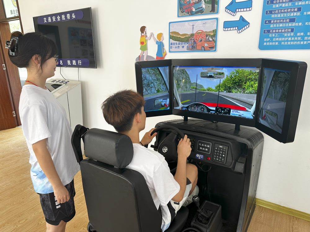 在牛心山社区交通模拟室,实践团成员们首先接受了交通安全教育。通过体验汽车模拟器等设施,成员们深刻感受到了超员驾驶和酒后驾车所带来的危害,同时也认识到了系好安全带的必要性。这些体验活动让成员们对交通安全有了更为直观和深刻的认识。