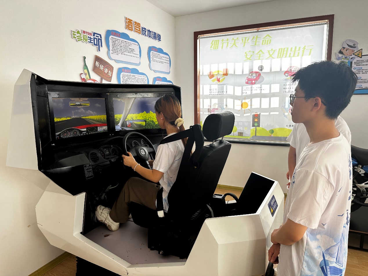 首先,实践团成员进入了交通模拟室内,仿佛置身于真实道路之中。他们首先体验了模拟不系安全带驾驶的场景,这种模拟带来的强烈冲击力让参与者深刻认识到了安全带的重要性,引发了对交通安全的深刻反思。随后,模拟酒后驾驶的视角让他们直观感受到了视觉模糊和反应迟钝的危险,这种逼真的体验教育着每个人在驾驶选择时应具备的责任感和理智。这些模拟不仅有效提升了实践团成员的交通安全意识,也深化了他们对法律法规的尊重与遵从,使他们更加珍惜生命,注重法律的约束与保护。