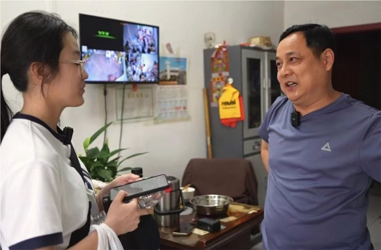 图为团队成员采访负责人郑士付 杨羽凡 摄