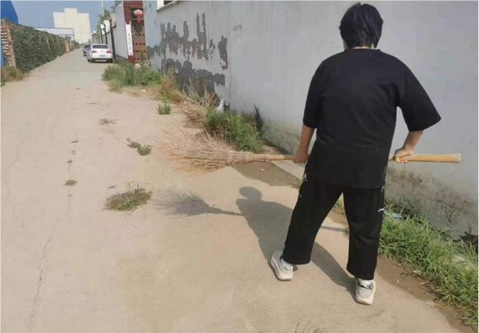 图为基层服务实践团成员认真打扫街道卫生,为乡村营造了整洁的环境并以实际行动向当地宣传了卫生防范意识。通讯员 陈威宇 摄