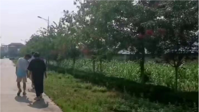 图为基层服务实践团成员调查当地绿化情况并讨论改进措施。通讯员 陈威宇 摄