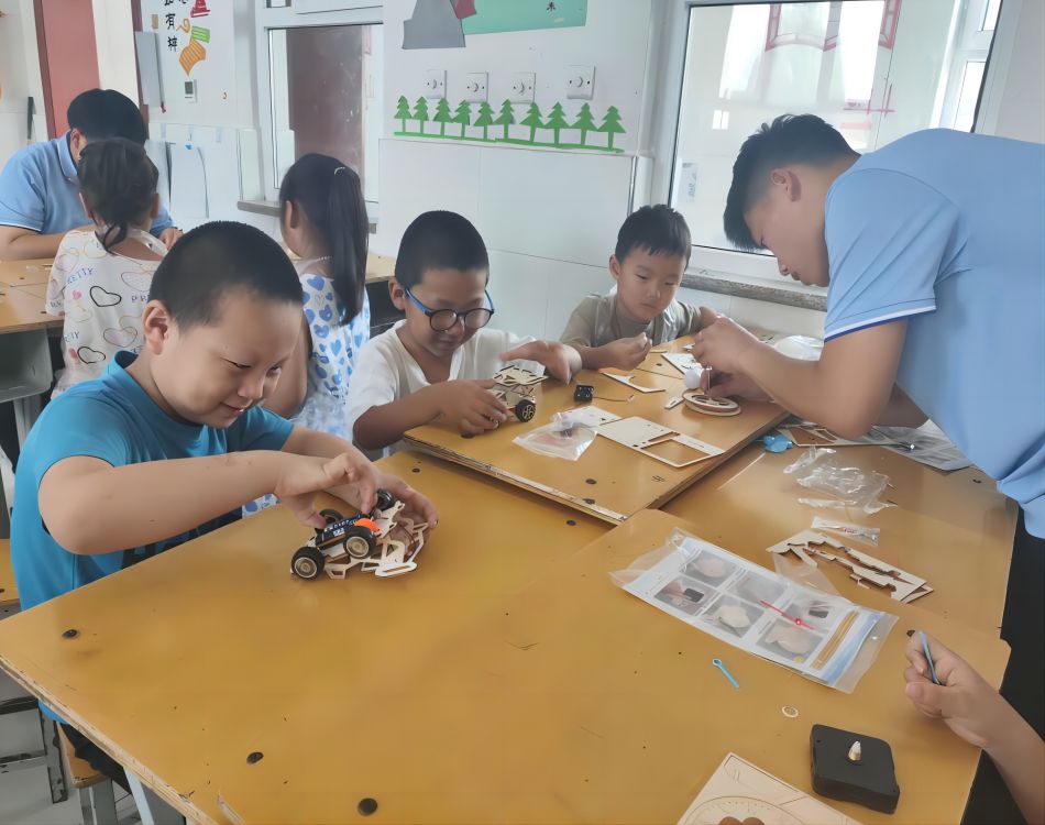 发明创造,筑梦想发明源于生活,劳动创造智慧。实践队员们带孩子们走进科技世界,向他们介绍了多种多样的小发明及发明背后的原理,满足孩子们对科技世界的无限遐想。在知识互动环节,孩子们对科学知识充满好奇,纷纷争先恐后抢答问题。为了推动理论与实践相结合,提高动手能力,做到寓教于乐,队员们进行分组、手把手带领孩子们制作小发明。科创活动让孩子们在“玩”的过程中,深入探索科技奥秘,真正体验成功自信。