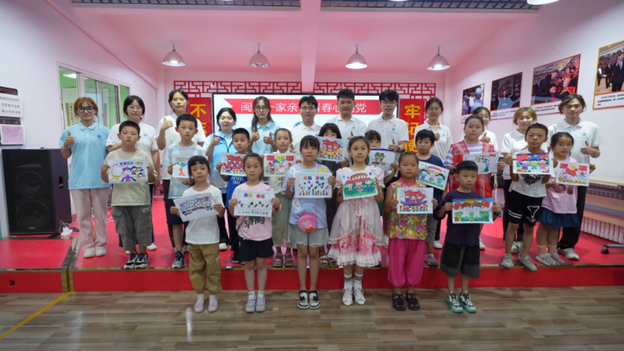图为三下乡队员们教孩子在民族团结绘本上涂画。福建医科大学基础医学院肖雅、杨翠玥供图。