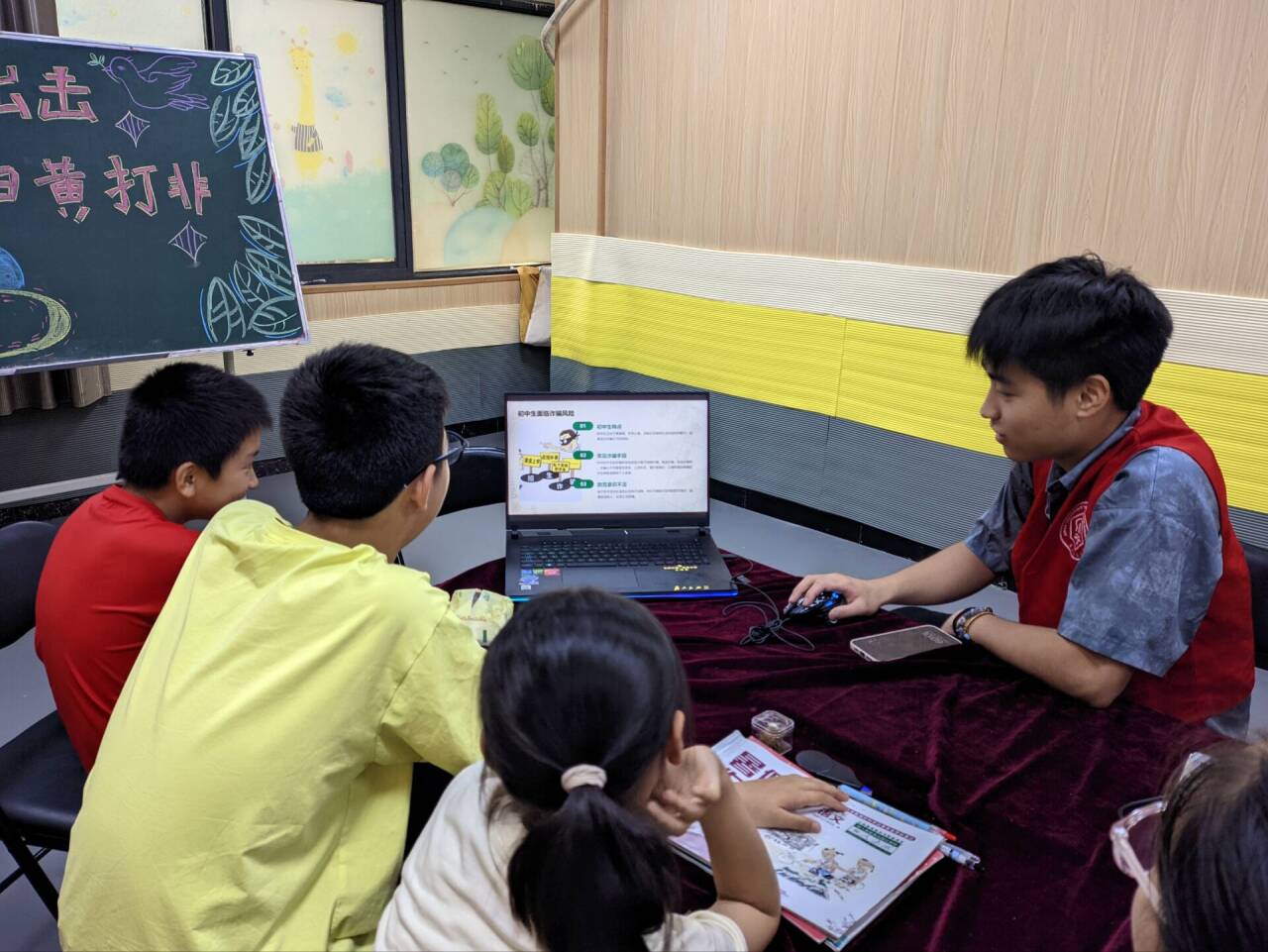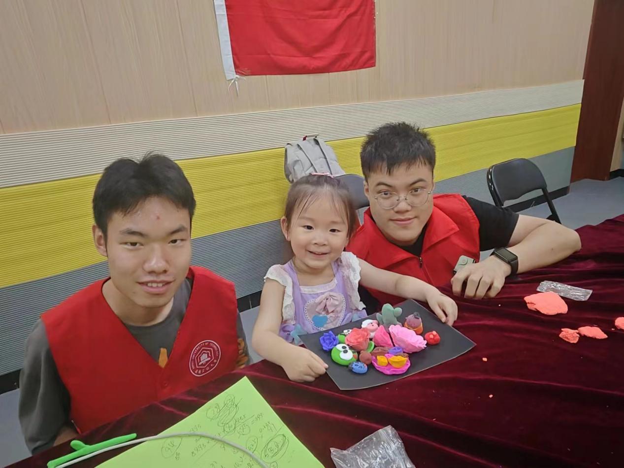 图为志愿者与孩子们一同做手工。何肖阳 供图