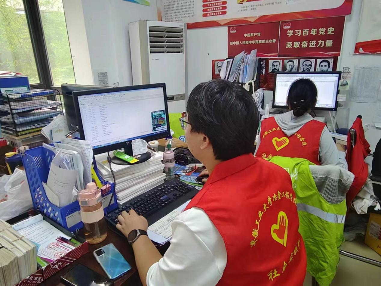 图为志愿者协助社区工作人员进行户卡核对工作。何肖阳 供图
