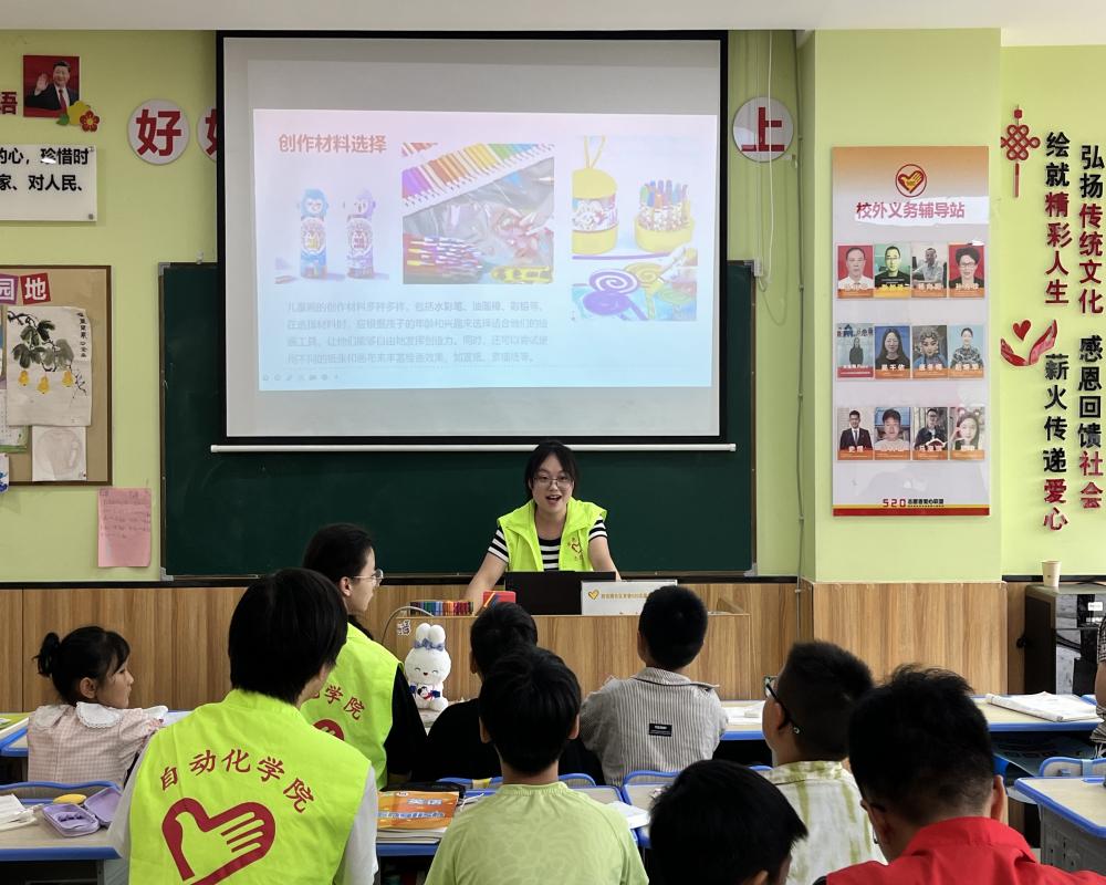值得一提的是,在创作过程中,不少孩子主动邀请实践团成员参与绘画,这一互动环节不仅拉近了学生与实践团成员之间的距离,更在一次次深入的交流中,让实践团成员们聆听到孩子们内心深处的声音。这种美育观念的传递与情感的融入,为孩子们打开了一扇通往艺术与梦想的大门。