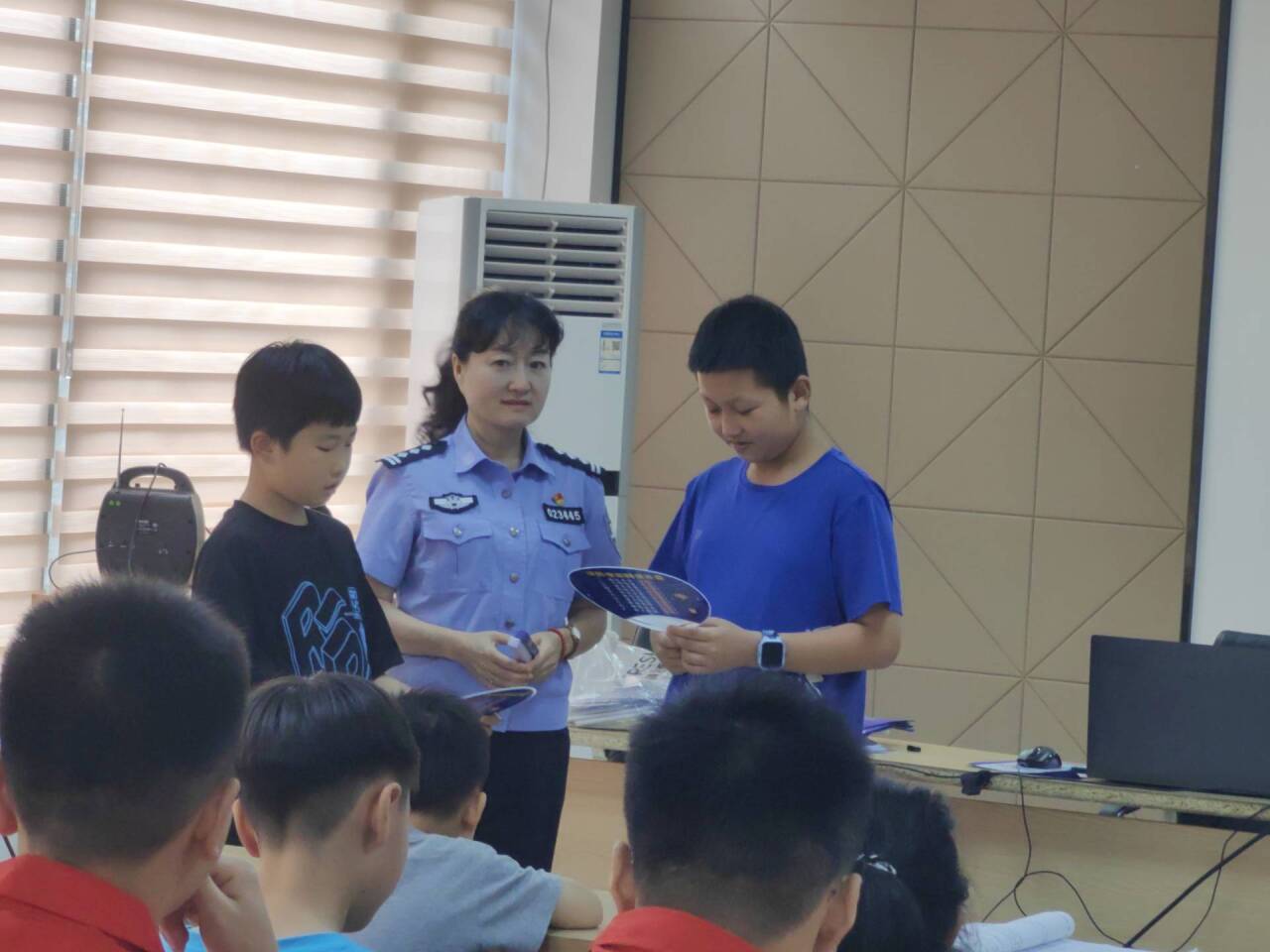 图为警察进行“你我同行”暑期安全讲座。王嫣苒 供图