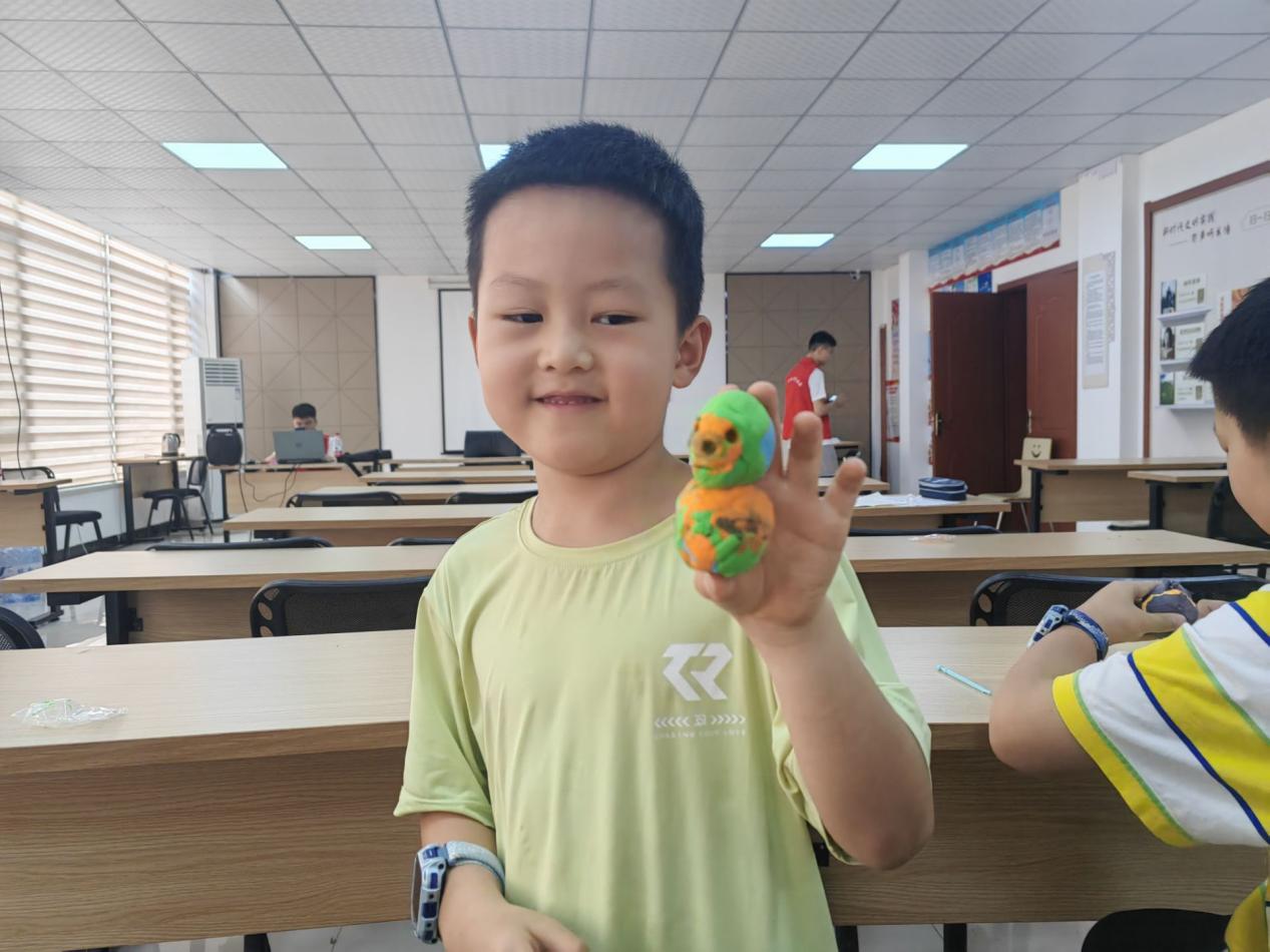图为孩子分享手工的喜悦。王嫣苒 供图
