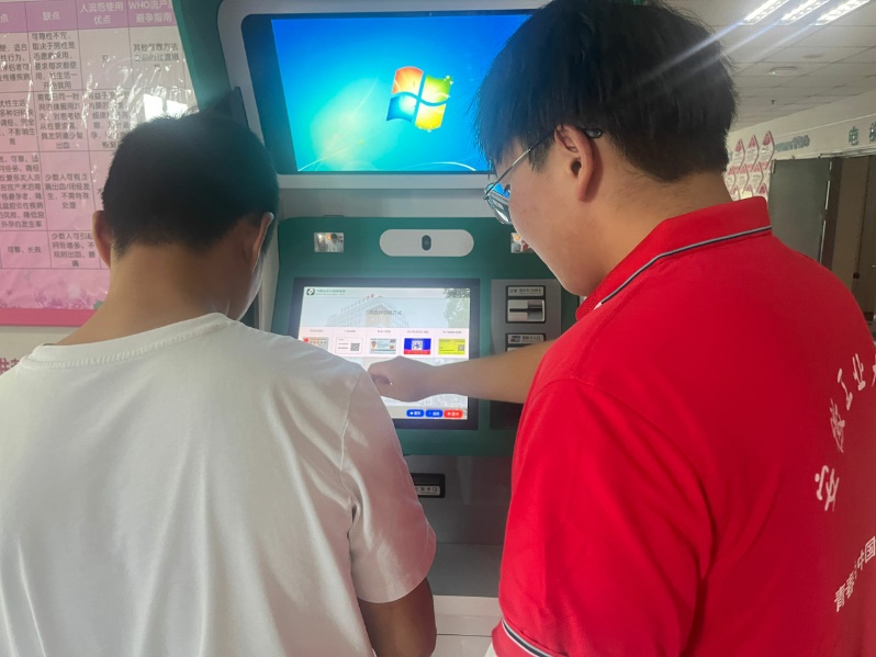 图为志愿者在智能设备旁等候便民服务。唐添添 供图
