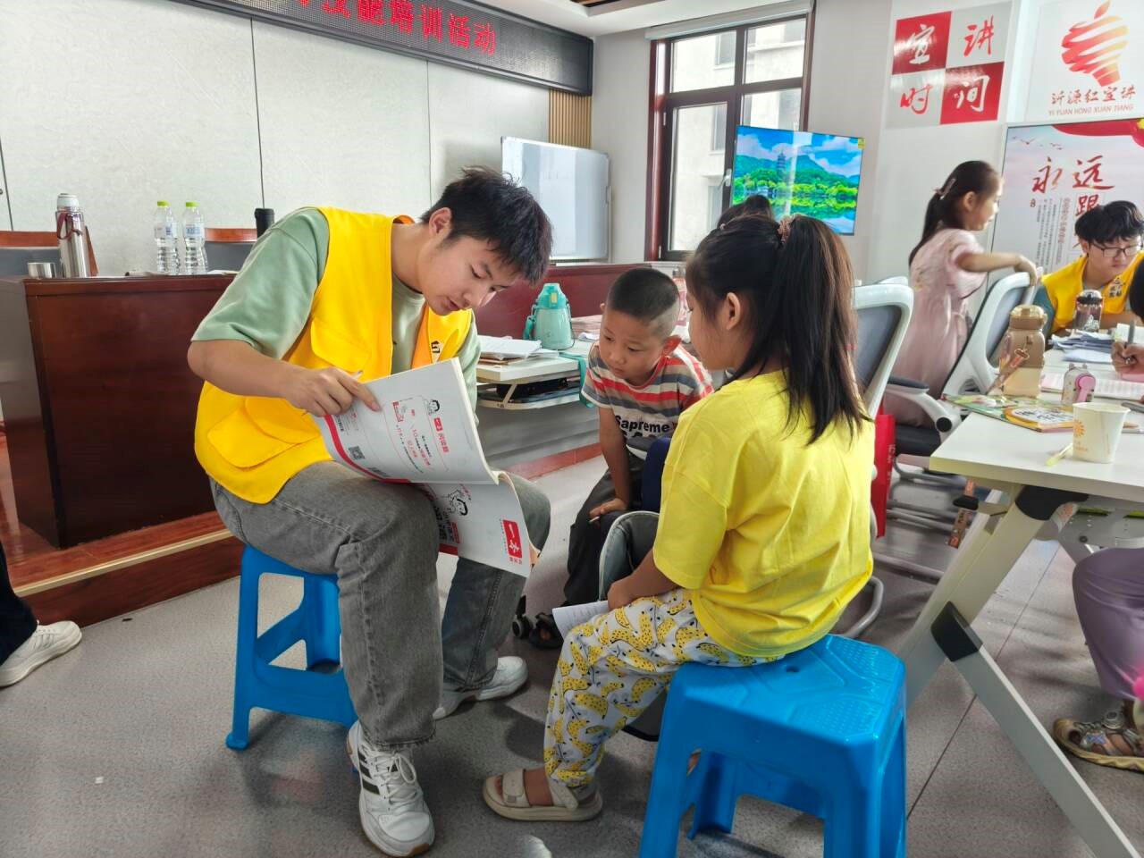 在培训间隙,实践团成员还为小学生和中学生进行了课业辅导。针对不同年级学生的学业难点,实践团成员提供了一对一的辅导和解答,帮助学生们更好地理解和掌握课堂知识。
