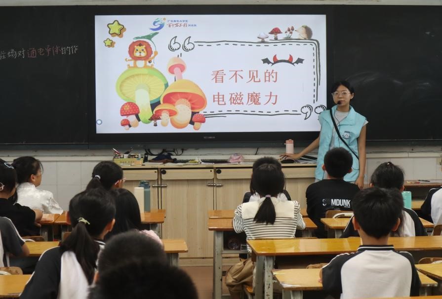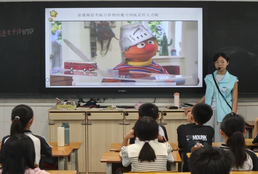 为深入贯彻习近平总书记在二十届中共中央政治局第三次集体学习时的重要讲话精神,一体化推进教育、科技、人才高质量发展,2024年7月30日,华南师范大学物理学院团委学生会服务队在星槎小学开展了名为“看不见的电磁魔力”的特色物理课程。