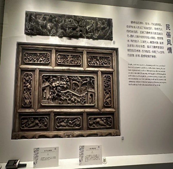 实践队员们在了解徽派文化时,有一项非文化遗产让实践队员印象尤为深刻,古徽州的木刻技艺尤为高超,其中的木刻作品精细美妙,反映着古徽州人民的真实生活面貌形态。木雕文件做工精细,一刀一刻之间反映着徽州人民身上所蕴含的耐心与精细。实践队员游览于文物作品之间,徽州文化的形态造型美在实践队员心中留下了深深的印象,让实践队员们赞叹于木雕技术的高超绝伦。