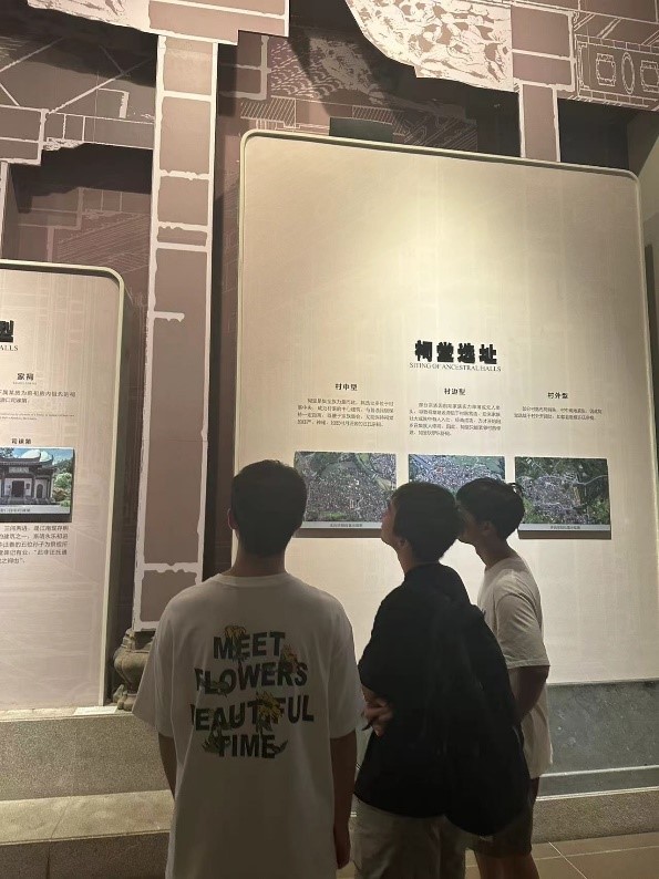 随后,实践队员们参观了安徽省博物院内的徽州古建筑文化,徽州古建筑展通过水口、牌坊、祠堂、民宅等单元,全面展示了徽州地区独特的人文历史风貌和古建筑艺术特色。气势恢宏的徽州古建筑让实践队员们驻足许久,欣赏着徽州文化所独有的白墙碧瓦的