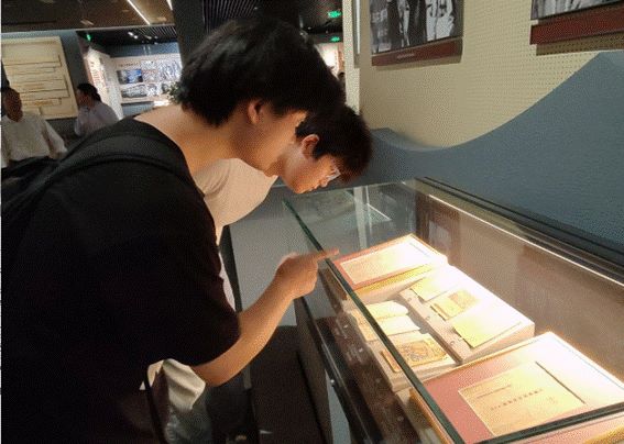 图为实践队员在参观纪念馆内的文物。中国青年网通讯员 黄鑫 摄