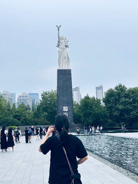 图为实践队员注视和平纪念碑。中国青年网通讯员 龙芊惠 摄历史的悲剧不应被遗忘,而应成为我们前行的动力和警示。南京大屠杀是人类历史上的一场浩劫,是对人性的践踏和对文明的亵渎。我们不能忘记这段历史,不是为了延续仇恨,而是要以史为鉴,让悲剧不再重演。同时,我们也感受到了责任的重大,也清楚的认知到和平并非一蹴而就,而是每一代人不断努力、不懈追求的结果。我们生活在和平的年代,享受着前人用鲜血和生命换来的安宁,应当倍加珍惜。我们要努力强大自己的国家贡献力量,坚决捍卫和平,积极传播和平的理念,让更多的人了解历史的真相,共同抵制战争,守护这来之不易的和平。