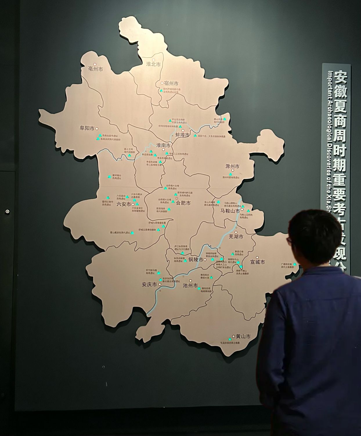 图为实践队员在细细观察安徽省夏商周时期重点考古发现分布图。 中国青年网通讯员 崔倡 摄