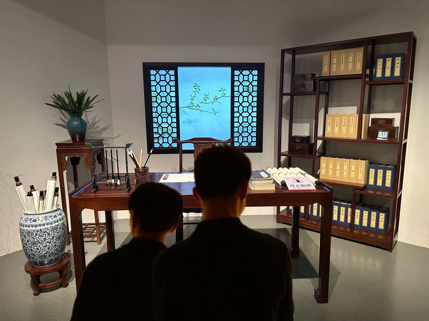图为实践队员驻足观赏文房四宝。中国青年网通讯员 孙鹏 摄