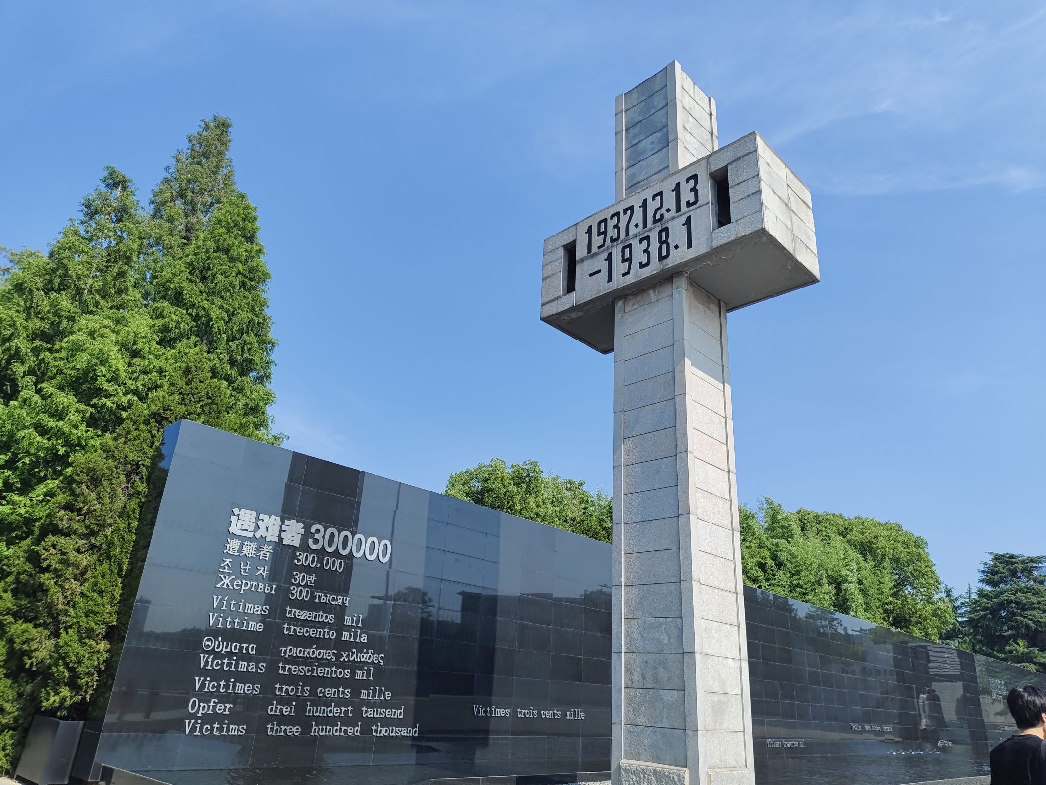 出馆后,左边有一个十字架,上面刻着1937.12.13-1938.1,而正对面的则是和平钟。继续往前走,明明应是暖暖的太阳,可照在身上却如寒风刺骨,看着这些雕像,每个人的脸上都是极其的痛苦,因为日军肆意的杀掠,无耻的强奸……