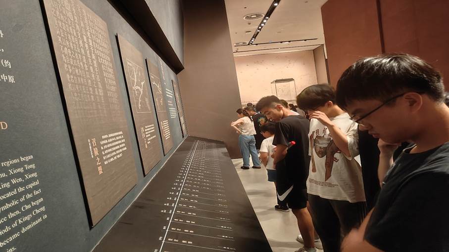 图为实践队员了解楚文化历史发展图 中国青年网通讯员 刘翼晟 摄