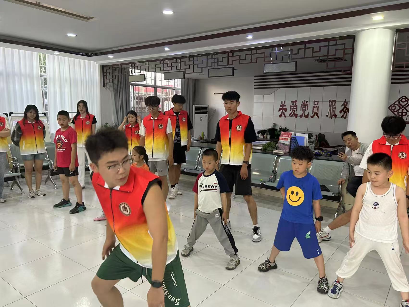 在实践过程当中,实践队员在传授教育中华传统武术套路时,观察到小朋友动作失误之处,耐心向小朋友们讲解指导正确规范动作。一位小朋友在事后一脸兴奋地说:“中国的传统武术真的是太酷了,在以后一定要把传统武术发扬光大。”实践队员也是在这次实践之后收获满满。这幅画面不仅展现了武术传承的严谨与专注,更体现了社会实践队员对孩子们的耐心教导和深切关爱。他们用自己的行动,传递着对传统文化的尊重与热爱,同时也为社区的和谐与美好贡献着自己的力量。