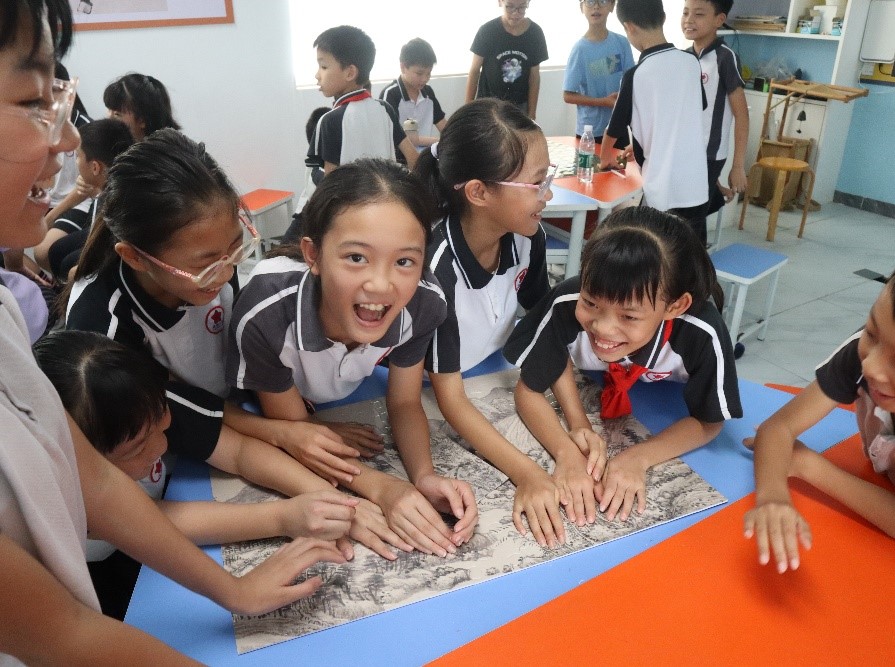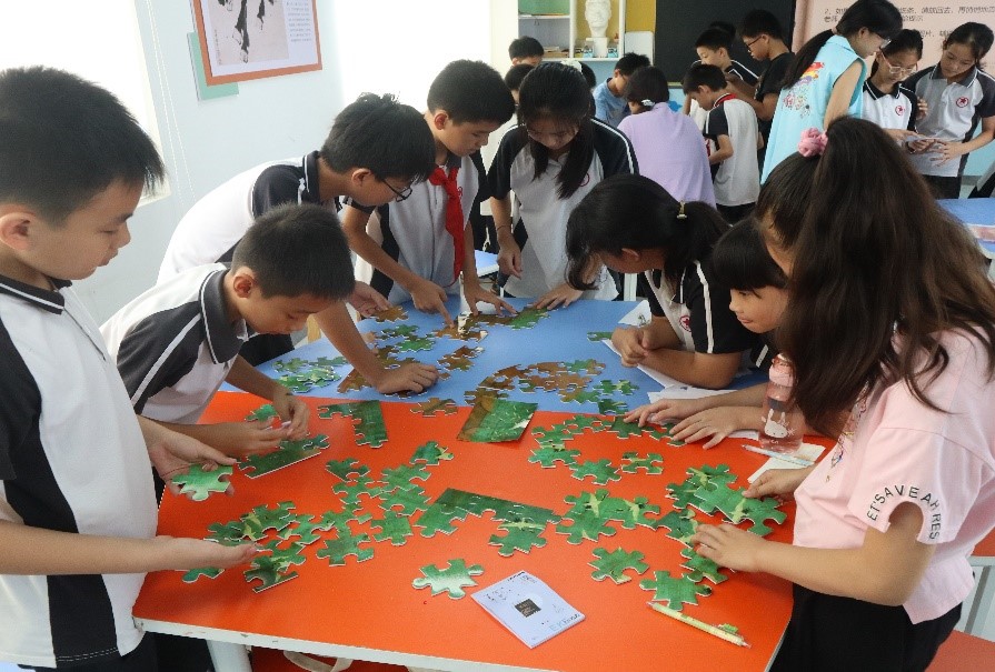 追寻千年墨香,传承文化之魂;共赏文化瑰宝,同筑精神家园;坚持寓教于乐,倡导以玩促学。2024年7月19日,华南师范大学物理学院团委学生会服务队在星槎小学开展了名为“墨香传千年,古画流芳韵”的修复古画情景模拟活动。在活动中,小朋友们化身“小小古画修复师”,根据线索集齐古画碎片、完成古画拼图,并在这个过程中了解古画背后的故事。通过亲身参与的方式,活动能让小朋友们更加深入地了解蕴含在古画修复中的文化之美,激发他们对古画这一传统文化的兴趣,为中华优秀传统文化的传承和发展注入新的活力。
