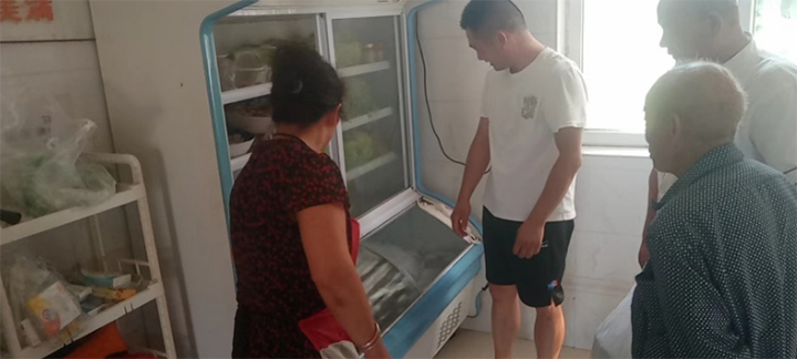 参观完食堂,成员们依次敲了几个老人的房门,在征得许可后依次进入房间递上慰问礼物。老人们对家乡年轻人的到来很是欢迎,热络地拉着实践团的成员聊了好一会,乡音回荡,笑声不断。针对问卷内容,成员们以老人可以理解的方式问询,顺利地完成了问卷的实地调研。可以直观地看到,每个老人的房间都很干净整洁,而且虽然外面骄阳似火,房间内部却因配备有空调和风扇一点也感觉不到炎热。