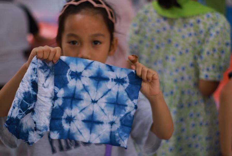 一扎一染一花色,一白一蓝一雅韵。在展示环节,小朋友们纷纷举起自己的扎染纸扇,脸上充满了自豪。这是小朋友们自己努力动手的成果,也是优秀非遗传统文化带给我们的自信。一块蓝染布,既是看得见欢乐的氛围,亦是学得到文化的底蕴。