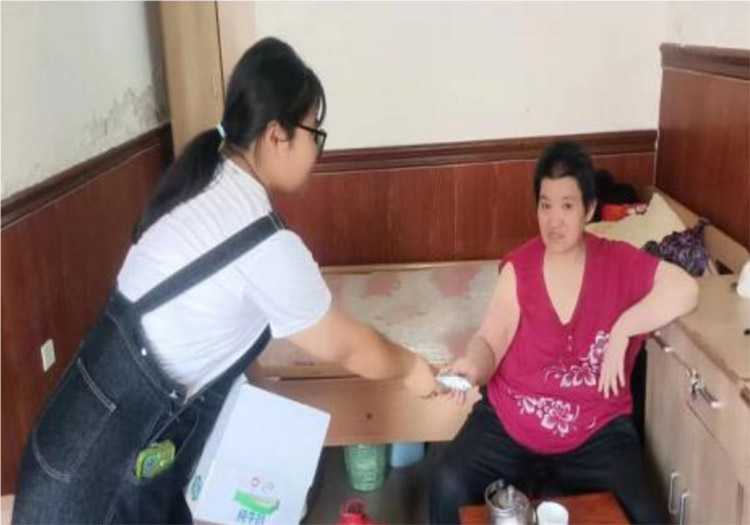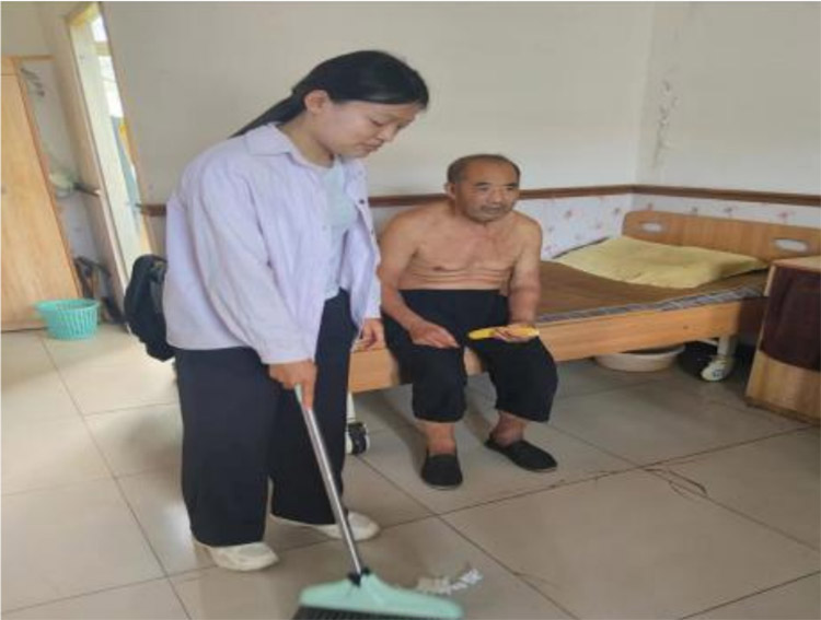 实践团成员给老人打扫卫生