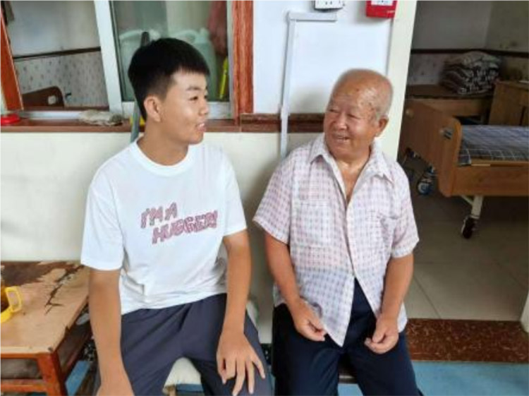 实践团成员陪老人聊天