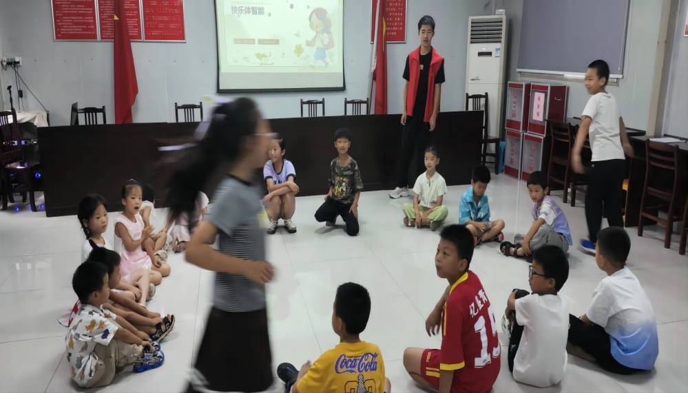 图为志愿者看护小朋友玩一二三木头人。通讯员 柯策水 摄