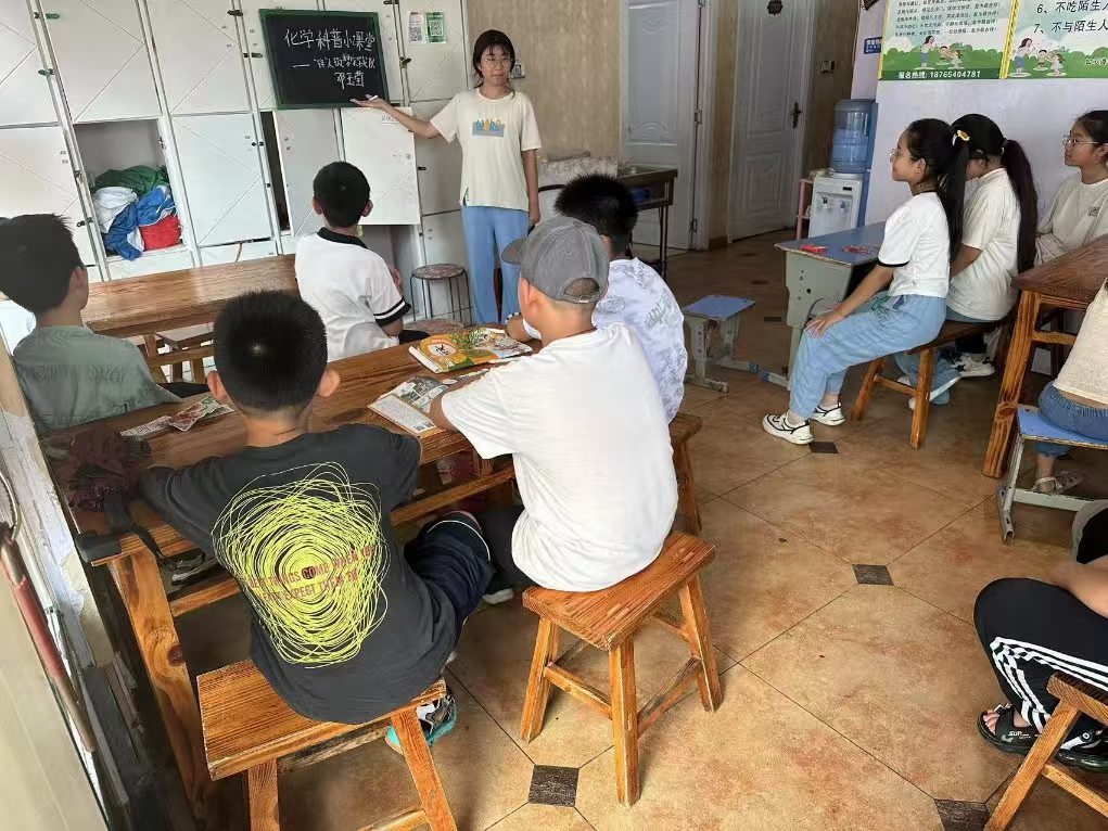 科普课堂,面向儿童科普,可以更好的将科学知识普及到公众中。对于孩子们来说科普可以帮助他们了解科学知识,激发他们对知识的兴趣和热情,促进他们全面发展。实践队员在进行社会实践中的科普活动时,主要围绕两方面进行展开——化学科普小课堂和垃圾分类介绍。化学科普小课堂可以把实践队员专业所学与实际应用相结合,达到学以致用的效果,而垃圾分类可以培养孩子们环保意识,爱惜环境与资源。实践队员提前准备好讲稿,充分挖掘身边的化学,在小课堂为孩子们介绍与生活有着密切相关化学知识,积极引导儿童氛围,让他们参与其中,更加深刻的了解了化学,明白了化学就在生活中而不仅仅在课本上。在垃圾分类的介绍中,实践队员制作了垃圾与垃圾桶小卡片,把孩子们分为“垃圾”与“垃圾桶”两只队伍,通过做游戏的方式让孩子们了解了如何进行垃圾分类,最后为孩子们讲解如何利用资源和保护环境,使他们深刻意识到保护环境的重要性。