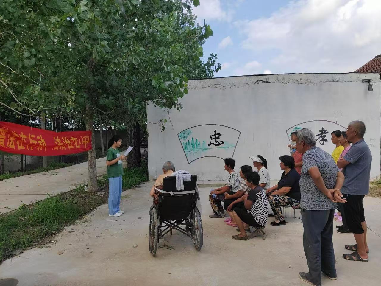 普法行动,必不可少实践队员本次普法活动主要是为乡村中老年人进行反诈骗宣传,普及反诈骗法。伴随着信息时代的发展,很多中老年人的手机也变成了智能机,由于他们对智能机的使用并不熟悉,对信息的处理有一定的滞后性,被犯罪分子诈骗的概率也有所提高。因此实践队员走入基层,协助基层开展反诈骗宣传活动。实践队员从解读反诈骗法、犯罪分子诈骗方式、日常生活如何提高警惕、被诈骗后如何寻求帮助等方面为中老年人展开介绍,提醒中老年人小心保健品骗局,不要因为贪图小便宜而在商场、街道等地方乱扫二维码,注意人身财产安全。实践队员还采用发放宣传单的方式,让更多人了解到诈骗方式的多样性,从而提高警惕,不让犯罪分子有可乘之机,保护人们的财产安全。