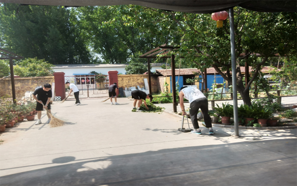 (图为实践团成员打扫庭院卫生)