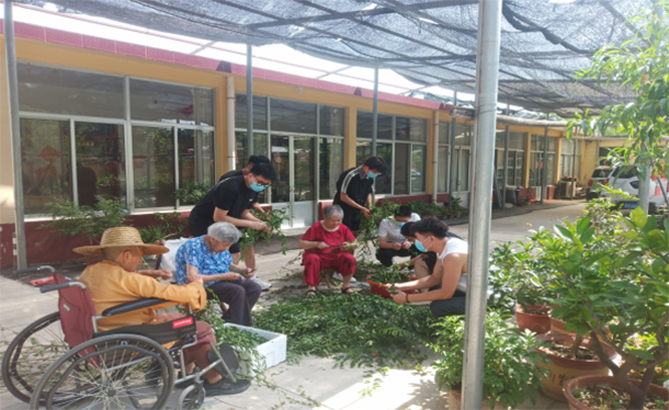 实践团成员怀着诚挚之心抵达了养老院。实践团成员们为老人们带来了慰问品,帮助老人们一起摘榆叶,与老人们亲切交流,了解他们的生活状况和生活需求,认真倾听老人们讲述过去的生活和经历。