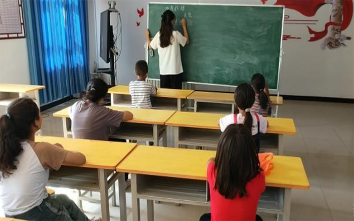 2024年7月30日安徽工业大学石榴籽推普社会实践队成员伊拉丽克孜·图尔荪在新疆阿克苏地区阿克苏市依干其镇良种尤喀克乔格塔勒村进行推普实践活动。