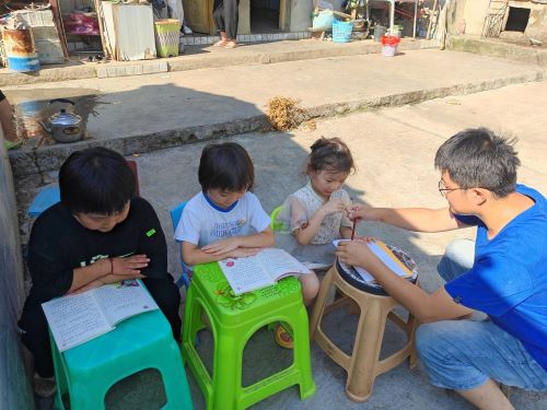 8月10日,实践队队员在云南曲靖罗平县老厂乡开展了线下实践活动,在室内讲解PPT。PPT主要内容包括帮助留守儿童学会如何明确学习目标与计划、怎样保持专注、合理安排休息时间、建立错题本和学会使用科学的学习方法。实践队队员亲身为留守儿童示范正确的坐姿、握笔姿势,来帮助他们从小养成正确的学习姿势。通过答疑解惑来加强留守儿童对如何养成优良的学习习惯的进一步理解。