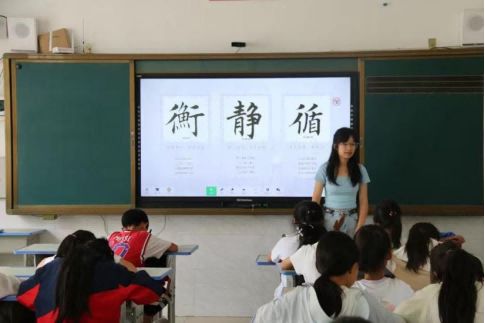 图为支教团成员李雨熙教学同学们书法课 杨欣供图