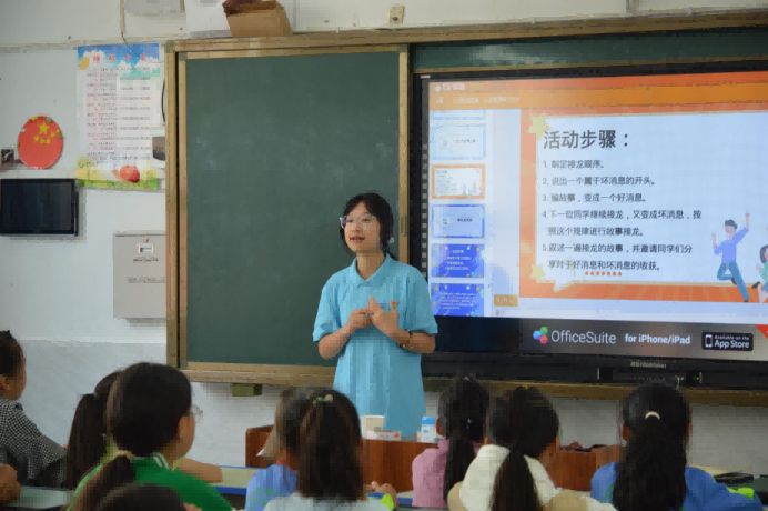 支教团徐倩倩首先借助视频向同学们介绍了大自然的食物链以及部分垃圾制造来源,随后采用问答的形式加深同学们对垃圾分类的认识,为了强化课堂效果,徐倩倩同学设计了实践环节,将生活中常见的垃圾制作成小卡片并邀请同学们动手分类。趣味多彩的形式使得孩子们听得津津有味,充分地融入课堂,期间,孩子们争相举手回答,受益良多。