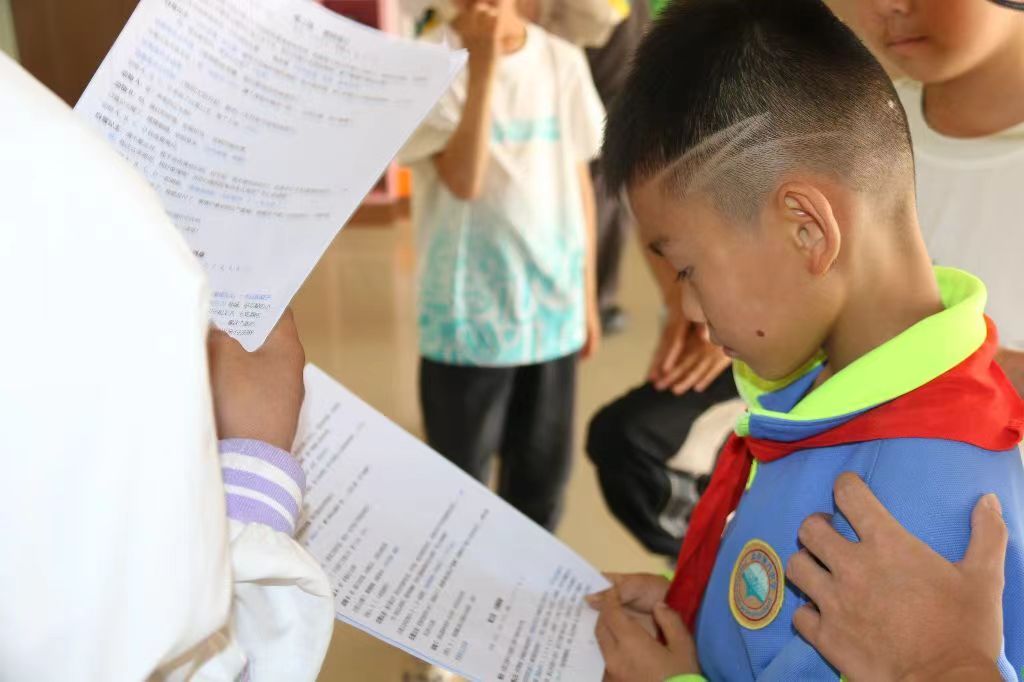 在为期一周的兴趣课教学后,孩子们站上了文艺汇演的舞台,展现自己的风采。7月27日上午,在盘州市第六小学的报告厅里,一场别开生面的文艺汇演拉开了序幕。 悠扬的童声唱出了对未来的无限憧憬和美好祝愿、表达了“今日事,今日毕”的坚定决心。童声合唱《明日歌》将朗诵、合唱、手势舞有机结合,孩子们稚嫩的脸庞上充满了坚定与自豪。歌声落下,一群身着自制“戏服”的孩子们登上了舞台,他们通过生动的角色扮演,讲述着关于勇气、友谊与成长的故事,带领观众们走进《白雪公主与七个小矮人》和《三打白骨精》的世界。