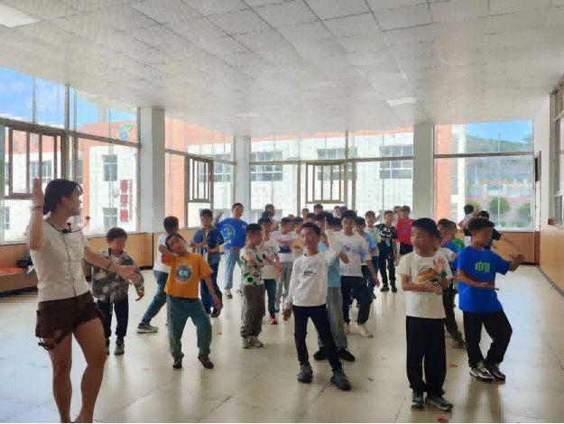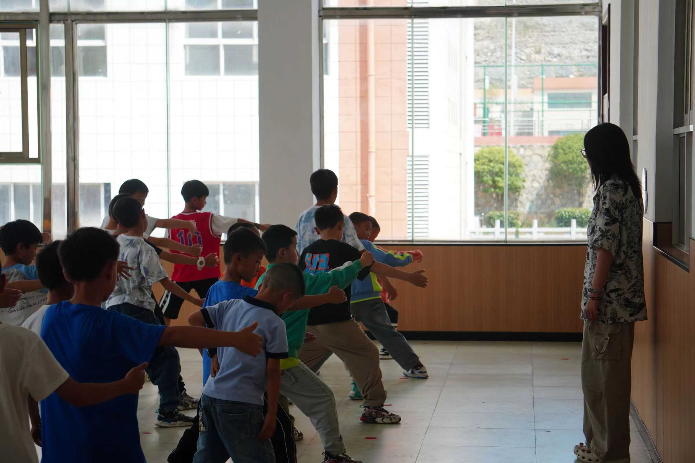 结合孩子们的兴趣与特点,梦企航支教团的成员们设计了丰富多样的课程。舞蹈兴趣班的刘璎萱老师和廖婕老师分别针对不同基础的孩子准备了不同难度的舞蹈片段,让孩子们在轻松愉悦的氛围中感受舞蹈的魅力。炎热的下午,在舞蹈教室明亮的镜子前,孩子们紧盯着老师的动作,跟随老师打的节拍舒展四肢。汗水滴落在他们的脸庞,认真的孩子们专注纠正着自己的动作,随着欢快的音乐声翩翩起舞。