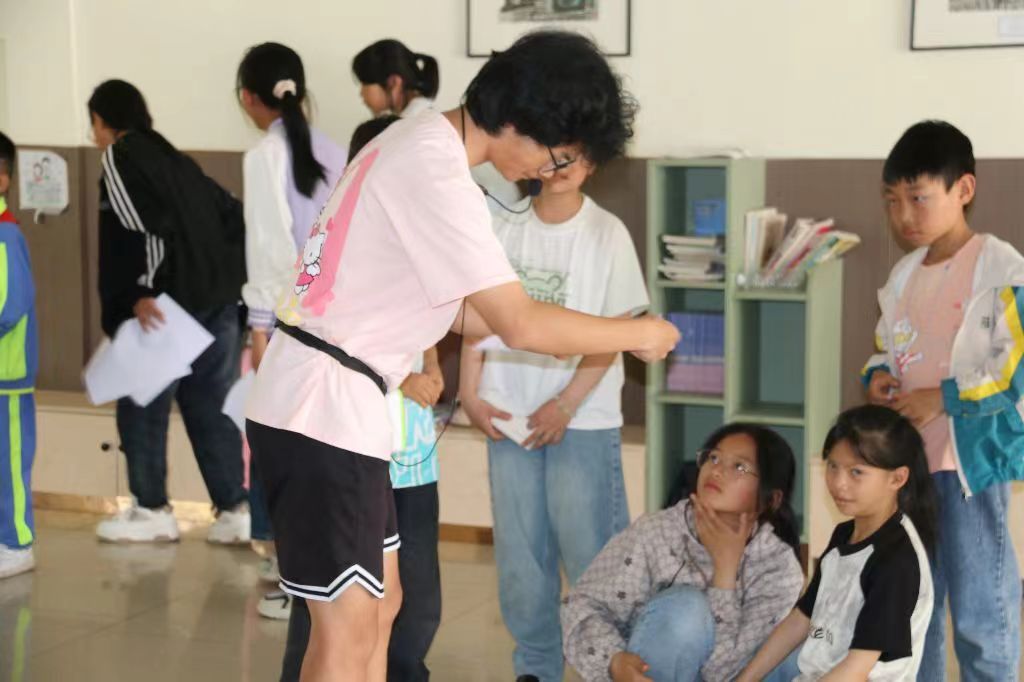 (图为支教团成员马杜在指导孩子们进行话剧排练 罗灿文供图)