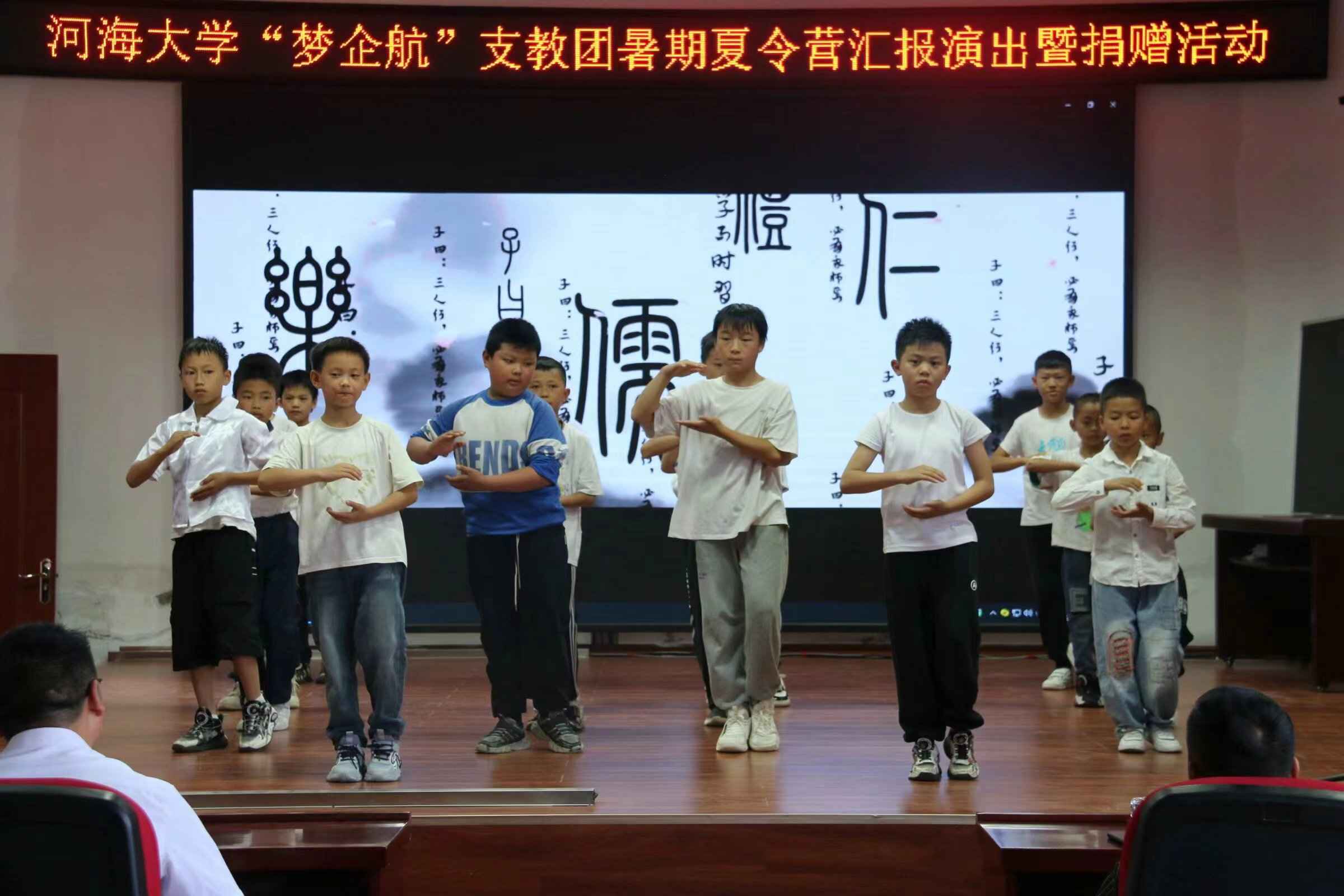 “中小学生要立志成才,必须勤奋学习、提高综合素质,努力做到修身立德、志存高远,勤学上进、追求卓越,强健体魄、健康身心,锤炼意志、砥砺坚韧。” 在习近平总书记的殷切期望下,河海大学梦企航支教调研团积极响应号召,于7月22至27日为盘州市第六小学的孩子们创新性开设了丰富多彩的兴趣课程,涵盖舞蹈、音乐朗诵、话剧、太极等多个艺术领域,并成功举办了一场别开生面的文艺汇演。此次活动不仅为孩子们搭建了一个展示自我、放飞梦想的舞台,更是将艺术的种子播撒在了每一个孩子的心田。