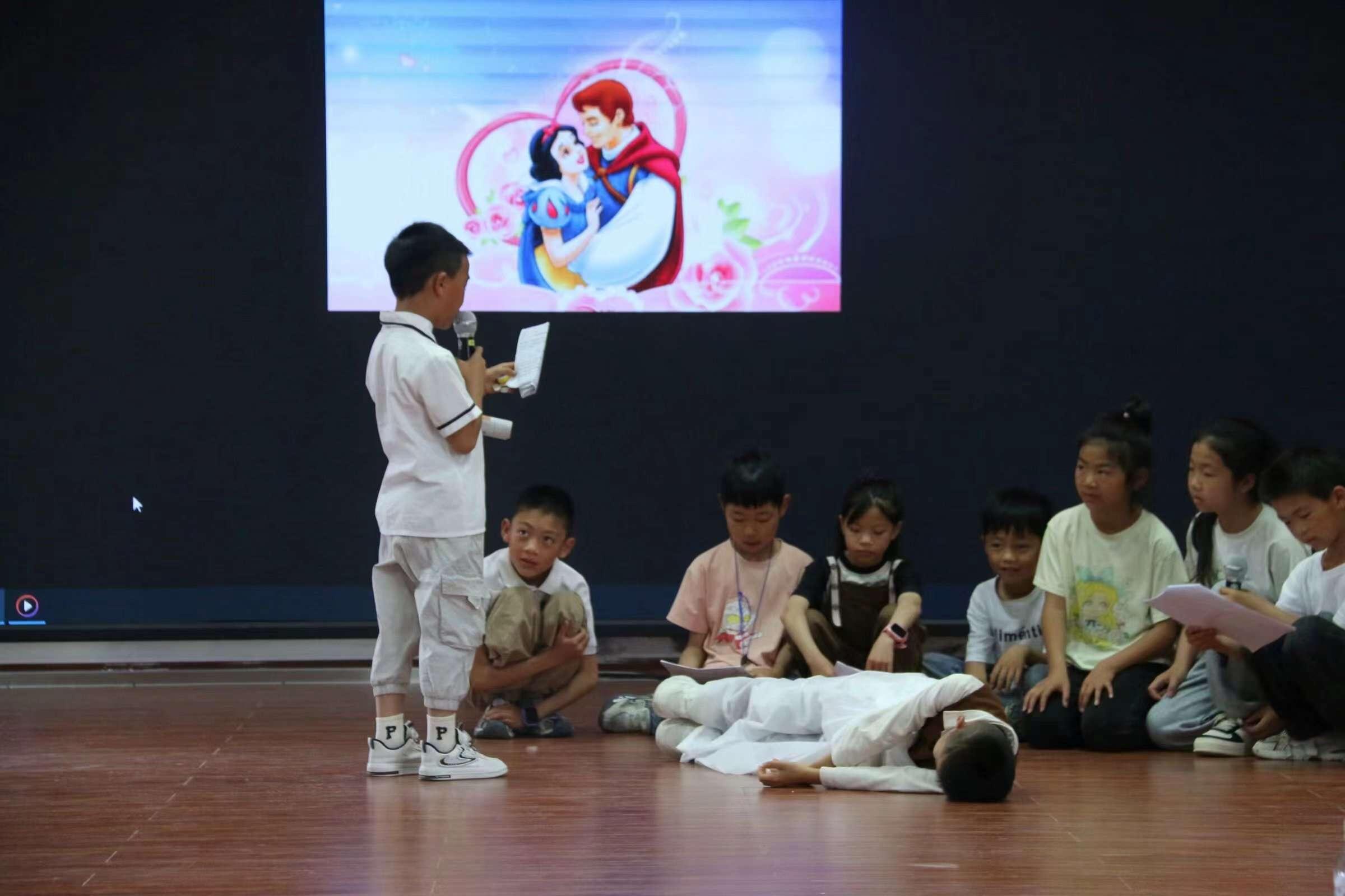 话剧兴趣课的王思杰老师和马杜老师为不同年龄段的孩子们打造了不同的话剧情节和台词,让孩子们在角色扮演中感受角色的勇气与力量,在故事演绎中明白人生哲理。话剧兴趣课上,老师指导着孩子们走进一个个角色中,感受台词中的抑扬顿挫。在一次次的排练后,孩子们仿佛已经化身自己所扮演的人物。流畅的台词与走位背后,是孩子们“台上一分钟,台下十年功”的努力。在孩子们的奇思妙想中,创造力也被激发:无论是反串“白雪公主”的小男孩,还是孩子们自制的金箍棒,都体现了他们的无限可能。