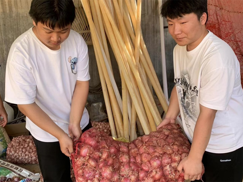 注:图三为实践团成员姜藩和商天乐帮助老人搬蒜