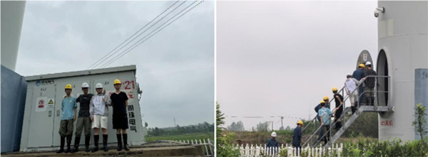最后,在仪征风电场运维技术员从鹏的引领下,学生们迎来了本次调研活动的高潮——深入风机内部,进行职业体验和调研工作。为了确保学生们的安全,公司精心准备了专业的装备。学生们穿戴整齐后,跟随从鹏技术员踏入风机内部。在这个充满科技感和神秘感的空间里,学生们亲身体验着风机内部的工作环境和运行原理,更加深刻地认识到了陆上风机的发电原理和当下技术的优势与痛点。通过切身的实践体验,学生们不仅将理论知识与实际操作紧密结合,更在心中埋下了一颗投身新能源事业的种子,期待着在未来的某一天,能够破土而出,茁壮成长。