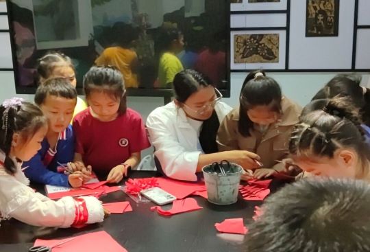 曲靖8月13日电(通讯员 张乂婧 张钰莹 钟姝媛)为积极响应国家关于传承发展中华优秀传统文化的号召,筑牢中华民族共同体意识,2024年7月,曲阜师范大学地理与旅游学院青叶朤龘实践队前往云南省曲靖市罗平县老厂乡,在当地少数民族社区及乡村小学开展一场以“红色传承,纸剪情长”为主题的剪纸艺术传承与交流的社会实践。此次活动不仅旨在弘扬中华民族优秀的传统文化,更希望通过剪纸这一独特的艺术形式,为相对贫困地区的留守儿童们带去欢乐与创意,让少数民族同胞感受到社会主义大家庭的温暖。