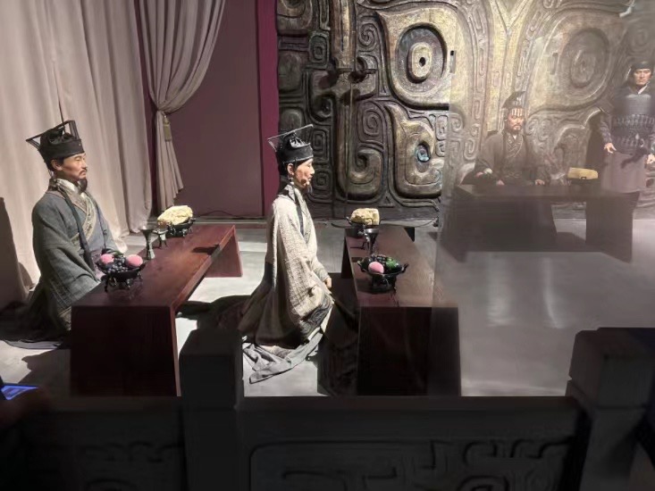 古铜新韵,文化交融 此次参观更令我难忘的是,铜陵博物馆不仅仅是一个展示文物的场所,更是一个传承文化、启迪智慧的平台。通过现代科技手段的运用,如数字博物馆、VR体验等,让古老的铜文化焕发出新的生机与活力。这种古今交融的展示方式,让我对铜文化有了更加全面和深入的了解。在这里,游客可以通过虚拟现实技术身临其境地感受铜文化的魅力。走过一条昏暗的、充满历史气息的长廊,一面投影出现在眼前。看着影像中栩栩如生的匠人和铜矿,这种沉浸式体验让我仿佛穿越了时空,与古代工匠来了一次跨越千年的对话。我能够亲手“触摸”到那些古老的青铜器,感受到它们所承载的历史重量和文化温度。同时,数字博物馆还利用虚拟现实技术,为我营造了一个个生动的历史场景,让我仿佛置身于古代宫廷、战场或祭祀现场,亲身体验那个时代的风土人情和文化氛围。