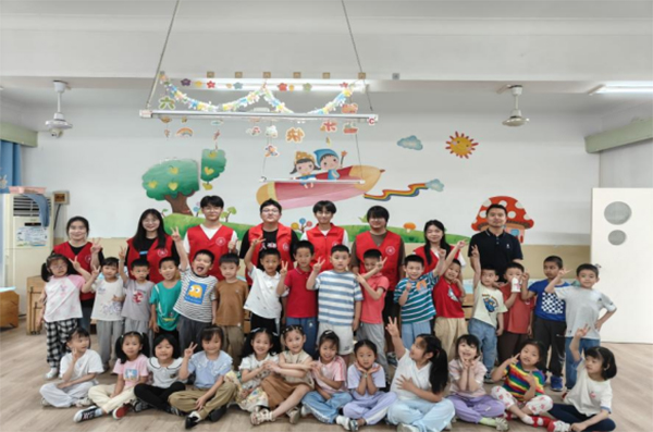 图为实践队和幼儿园小朋友合照 通讯员 张腾飞 供图