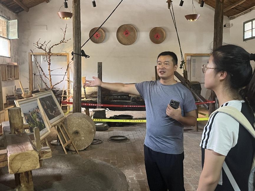 实地走访寻古韵,深入村落探遗风。2019年,习近平总书记在田铺大塆考察调研时指出:“依托丰富的红色文化资源和绿色生态资源发展乡村旅游,搞活了农村经济,是振兴乡村的好做法”。实践团追寻总书记视察新县的足迹,深入田铺大塆、西河村与丁李湾,走访农户店铺,邂逅古城生机。新县人民将古朴典雅的豫南古宅融入自然画卷,青山为屏,绿水绕舍,绘就一幅生态宜居的田园诗;以手心相授,将冷榨茶油、观音豆腐等非物质文化遗产发扬光大;以文化为魂,发掘古村古韵,举办文化节庆活动,传递悠悠古韵;以创新引领,开展文创大赛培育新兴业态,“九铺十八坊”点亮非遗名片;不断推动乡村旅游,让这些传统古村落的生命得以延续。