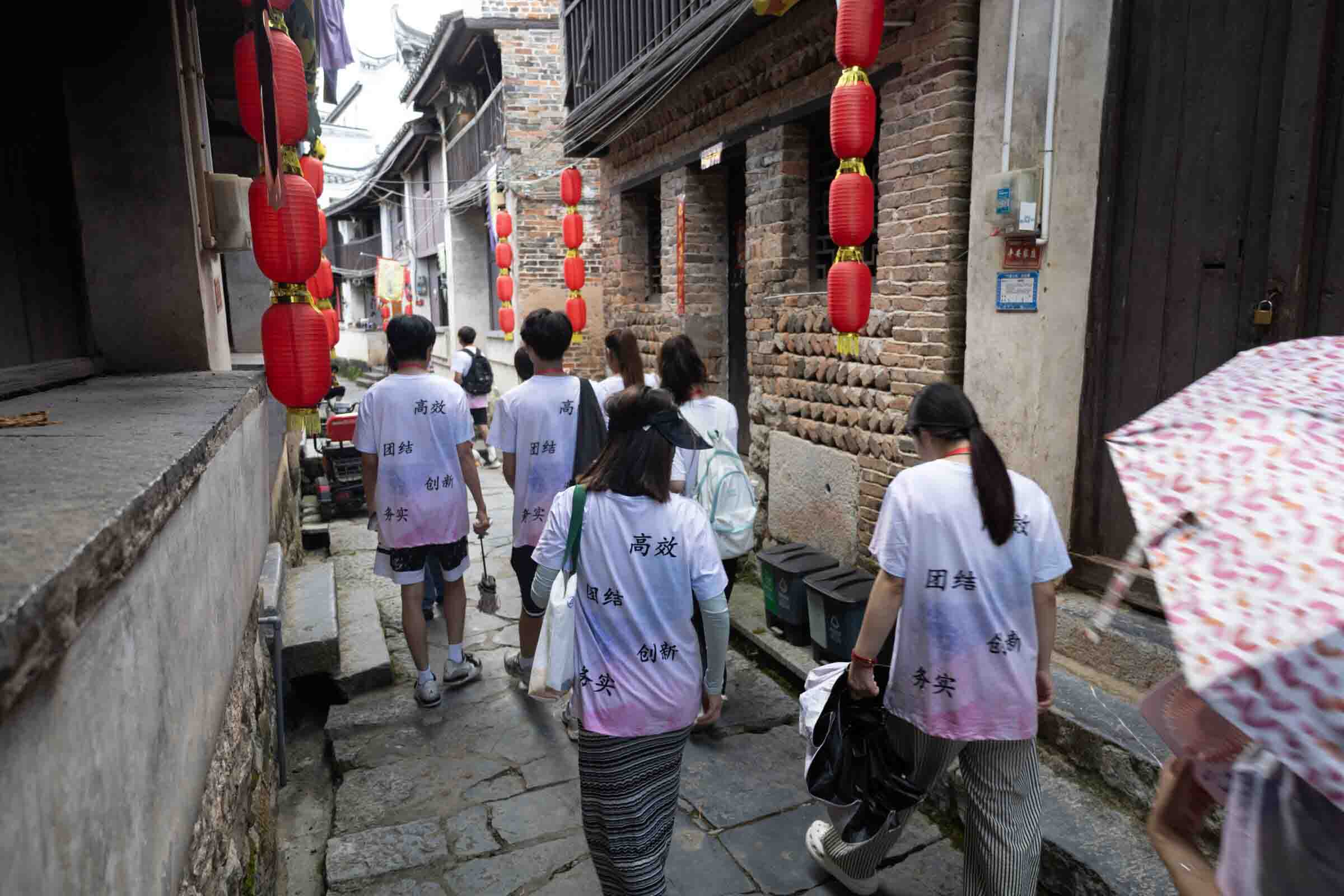 活动的最后一站,团队来到了古朴典雅的上甘棠村。漫步在石板路上,队员们仿佛穿越回了历史的长河,感受着古村深厚的文化底蕴与独特的民俗风情。通过参观上甘棠博物馆和实地访谈,队员们深入了解了古村的历史沿革、建筑风格及民俗特色,进一步认识到古村文化在非遗传承中的重要地位和作用。